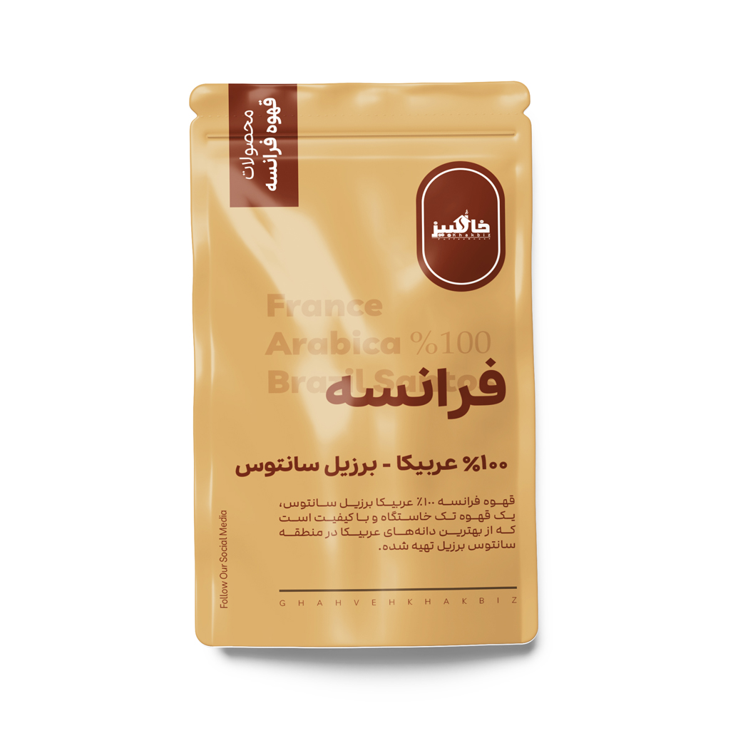 قهوه فرانسه 100% عربیکا برزیل سانتوس، یک قهوه تک خاستگاه و با کیفیت است که از بهترین دانه‌های عربیکا در منطقه سانتوس برزیل تهیه شده.